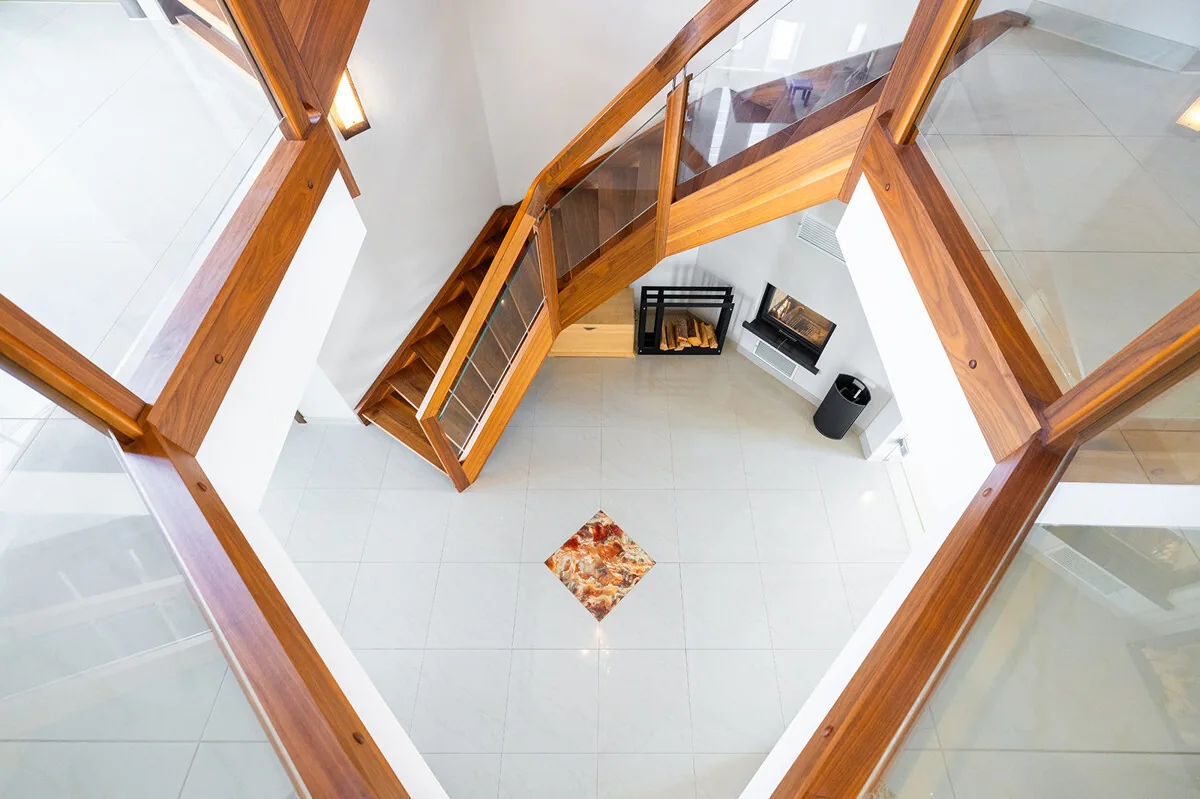 Das 1. Obergeschoss beherbergt zwei Bäder, drei Schlafzimmer und zwei Balkone. Das Elternschlafzimmer verfügt über ein Bad en Suite. Im Dachgeschoss befinden sich ein weiteres Kinderzimmer und der hauseigene Wellnessbereich mit Dusche, Luxusbadewanne und Sauna.
