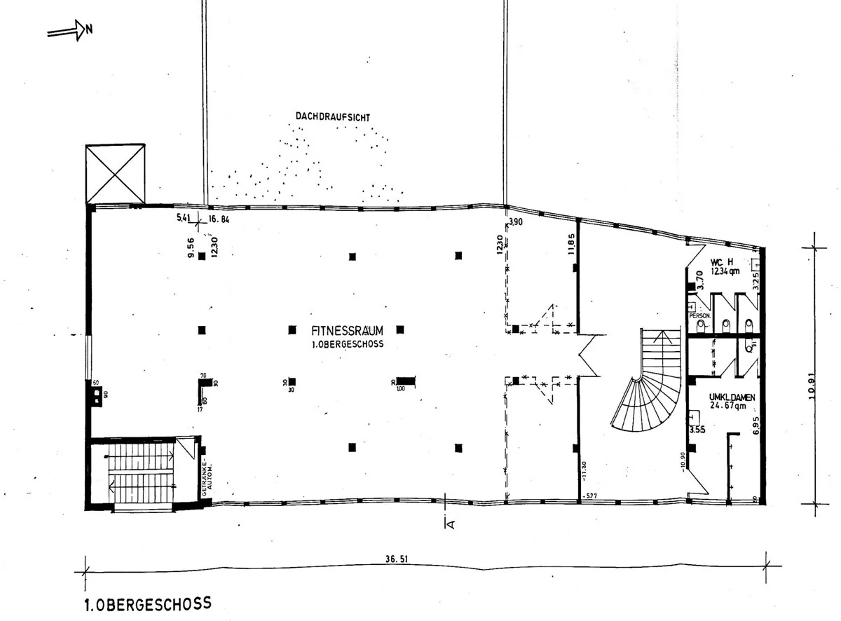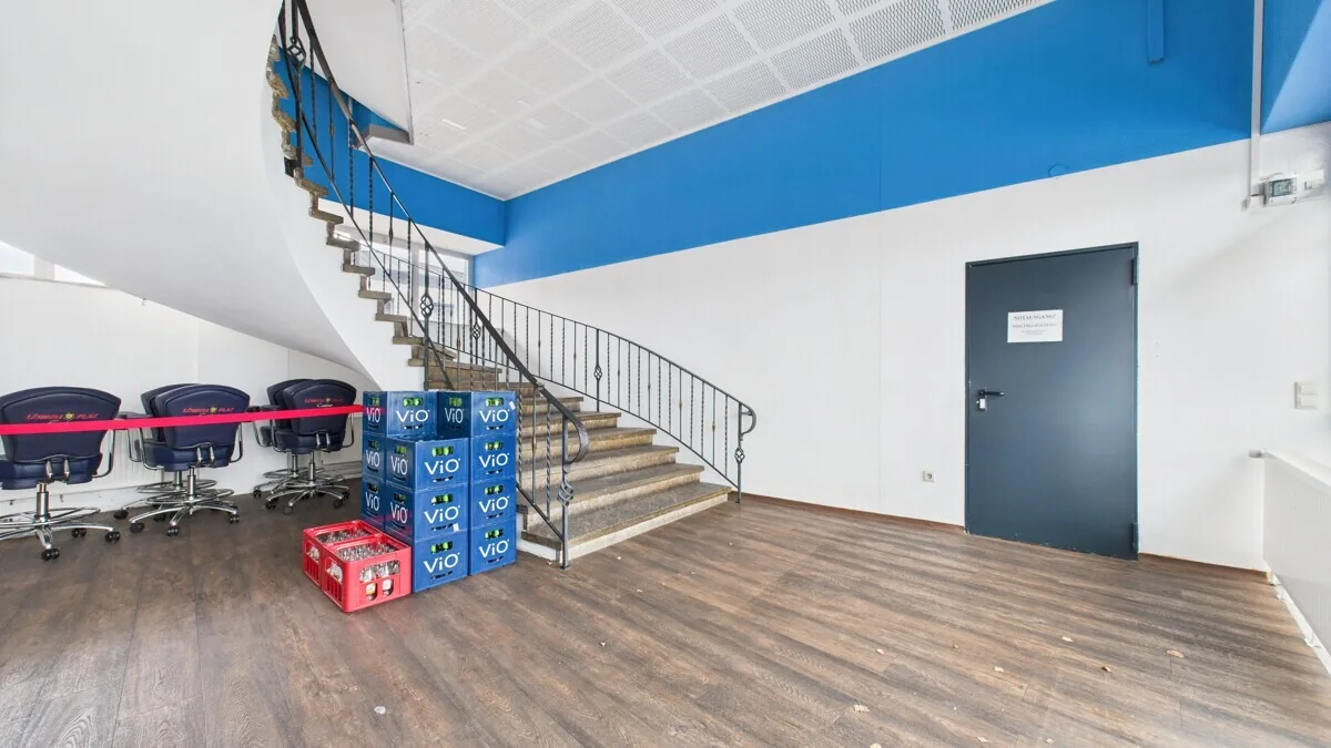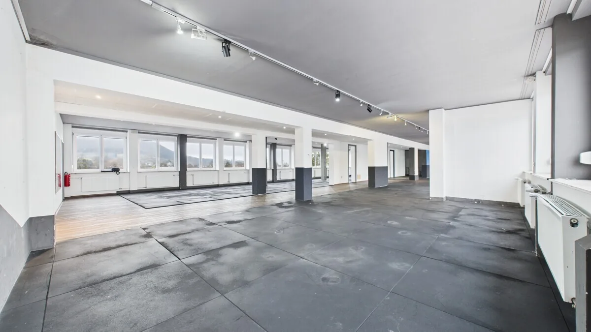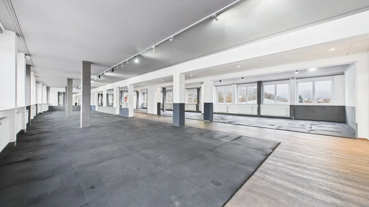 Die Obergeschosse bieten zwei große, offen geschnittene Gewerbeflächen, die zuvor als Fitnessstudio genutzt wurden und derzeit leerstehen. Mit Flächen von 365 m² (1.OG) und 369 m² (2.OG) eignen sich diese Bereiche ideal für Fitness- und Gesundheitskonzepte, Büro- oder Praxisnutzungen sowie andere publikums- oder dienstleistungsorientierte Gewerbeformen. Durch ihre flexible Struktur, Fensterfronten und die vorhandene technische Ausstattung bieten die OGs ein attraktives Entwicklungspotenzial.