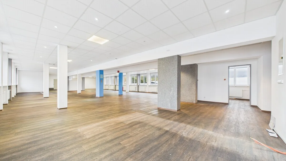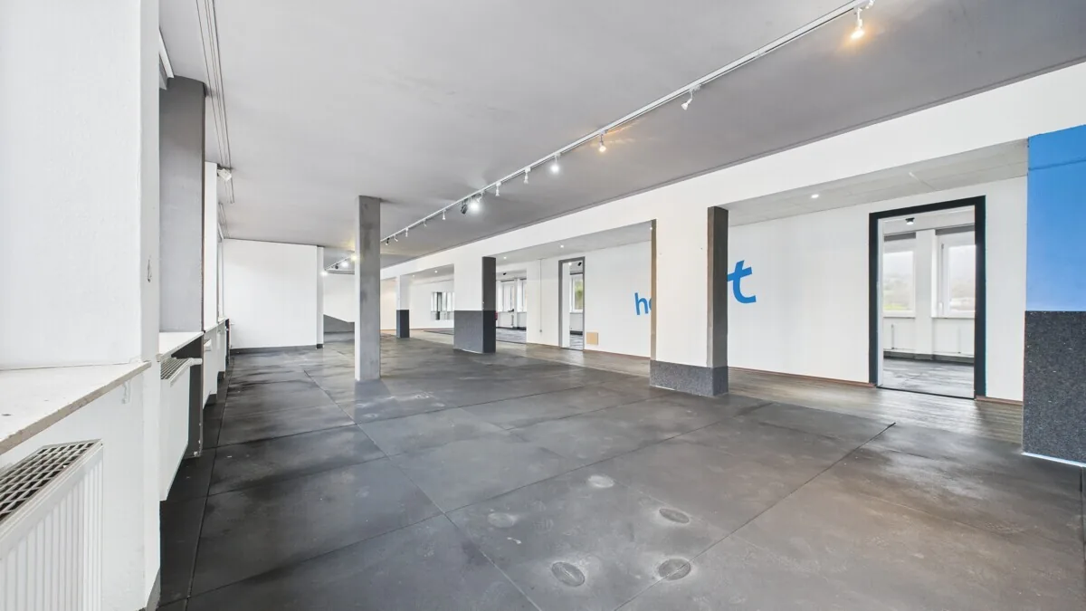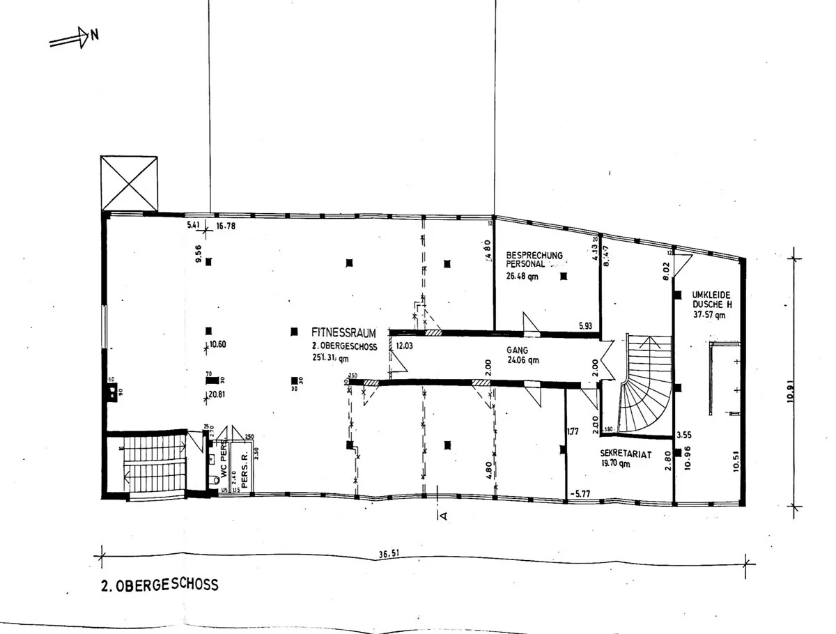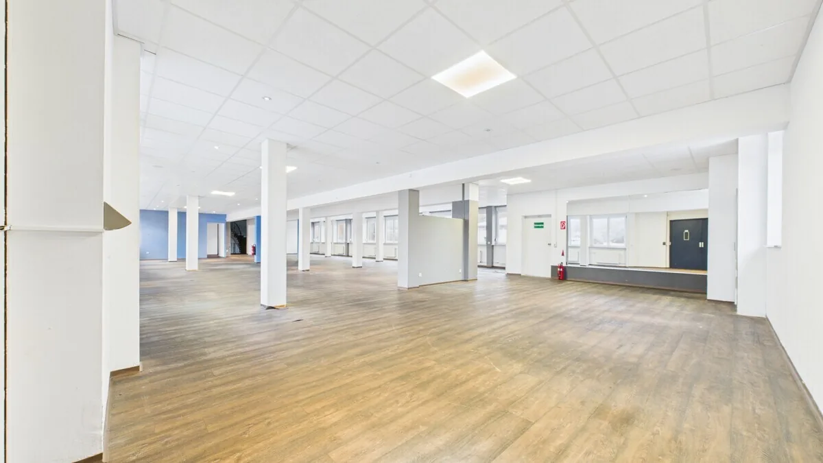 Die Obergeschosse bieten zwei große, offen geschnittene Gewerbeflächen, die zuvor als Fitnessstudio genutzt wurden und derzeit leerstehen. Mit Flächen von 365 m² (1.OG) und 369 m² (2.OG) eignen sich diese Bereiche ideal für Fitness- und Gesundheitskonzepte, Büro- oder Praxisnutzungen sowie andere publikums- oder dienstleistungsorientierte Gewerbeformen. Durch ihre flexible Struktur, Fensterfronten und die vorhandene technische Ausstattung bieten die OGs ein attraktives Entwicklungspotenzial.