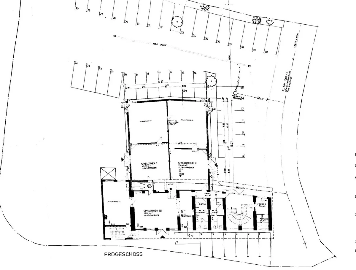 - Erdgeschoss: 550,73 m² - vermietet -> 30 Stellplätze