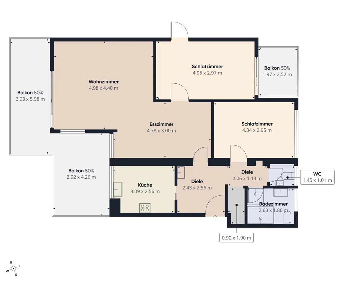 - zwei Balkone mit Ost- und Westausrichtung