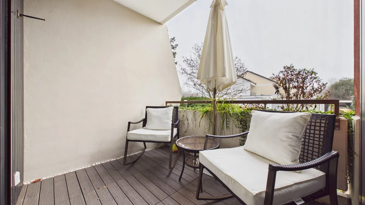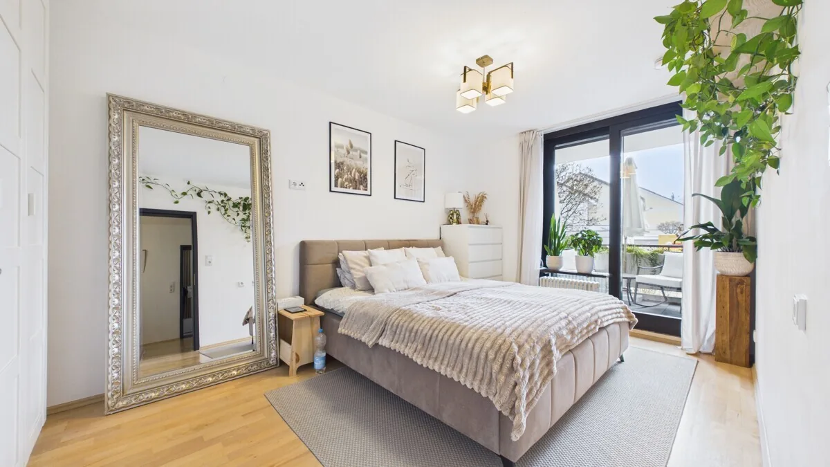 Vom Wohnbereich aus gelangen Sie direkt auf den großen Westbalkon, der zu entspannten Nachmittags- und Abendstunden im Freien einlädt. Das Schlafzimmer verfügt zusätzlich über einen weiteren Balkon mit Ostausrichtung, der einen sonnigen Start in den Tag ermöglicht. Zwei Balkone mit unterschiedlichen Himmelsrichtungen unterstreichen den besonderen Wohnkomfort dieser Immobilie.
