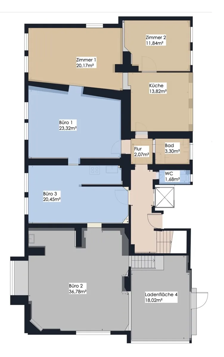 Einheit 1 – Ladenfläche mit Büro (ca. 54,8 m²)