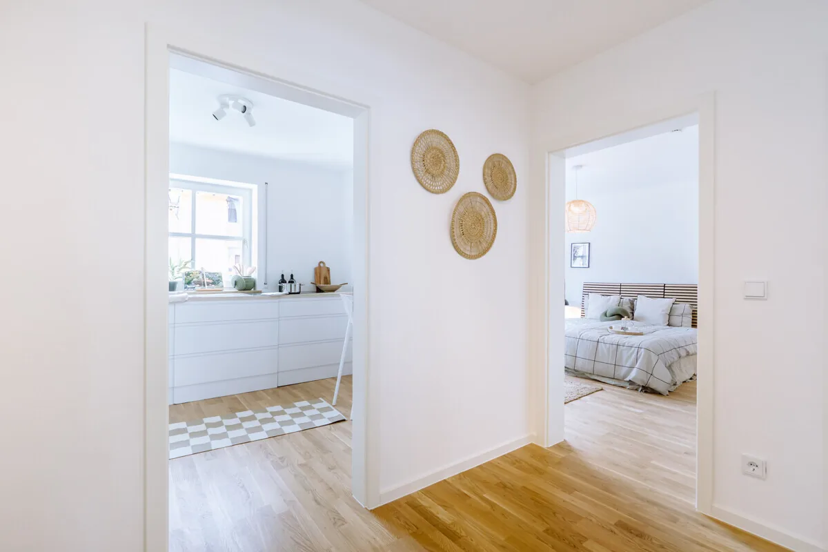 - Wände und Decken frisch weiß gestrichen